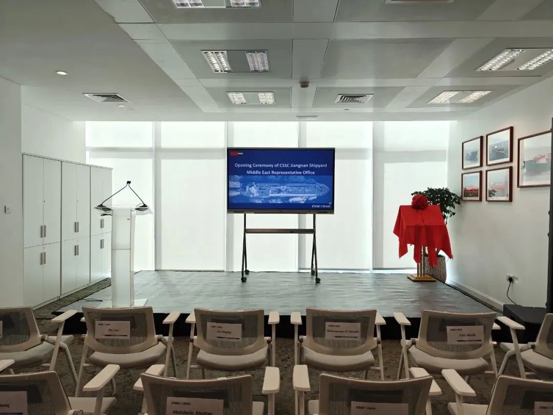 10月10日,中國(guó)船舶集團(tuán)江南造船中東代表處揭牌儀式,在阿聯(lián)酋首都阿布扎比舉行。