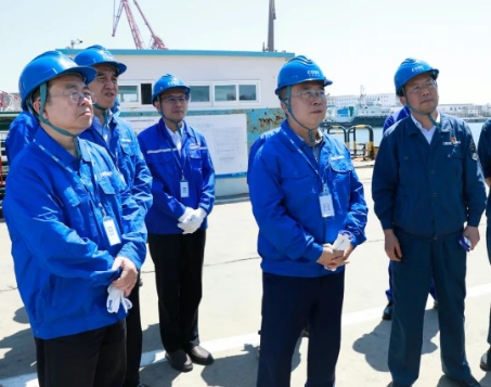王國(guó)強(qiáng)深入船塢、碼頭、試驗(yàn)現(xiàn)場(chǎng)等科研生產(chǎn)一線,察看了相關(guān)產(chǎn)品、重點(diǎn)建設(shè)項(xiàng)目,與一線員工就工作、生活情況親切交流,并聽(tīng)取了相關(guān)單位發(fā)展情況、科技創(chuàng)新、安全生產(chǎn)等情況匯報(bào)。