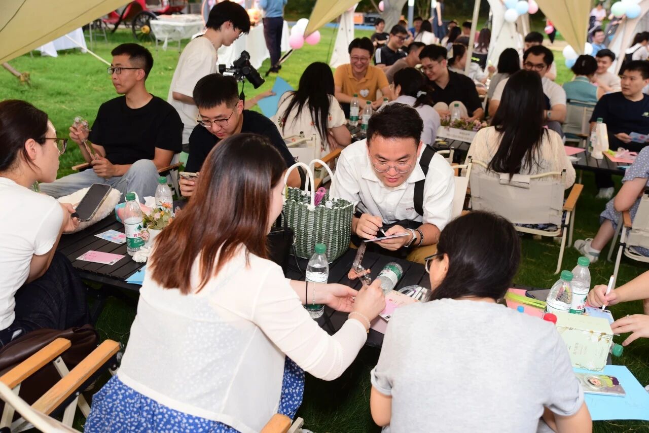 青年男女們帶著真誠與熱情,在交流中發(fā)現(xiàn)共鳴,在互動中收獲友誼?!耙慌瀮A心”“團隊競技”等破冰游戲迅速點燃現(xiàn)場氣氛,青年們放下羞澀,展現(xiàn)青春活力,現(xiàn)場笑聲與掌聲不斷;“共話知音”“若如初見”讓青年男女們能夠從容交談,主動分享個人愛好與職業(yè)故事,發(fā)現(xiàn)志趣相投的伙伴,創(chuàng)造難忘的互動時刻;“燒烤情緣”將活動推向又一個高潮,在炊煙裊裊與美食香氣中,情誼悄然生長;在“攜手深藍(lán)”環(huán)節(jié),青年男女填寫心動卡,坦誠心意,最終10對嘉賓成功牽手,為秋日序章畫上圓滿句號。
