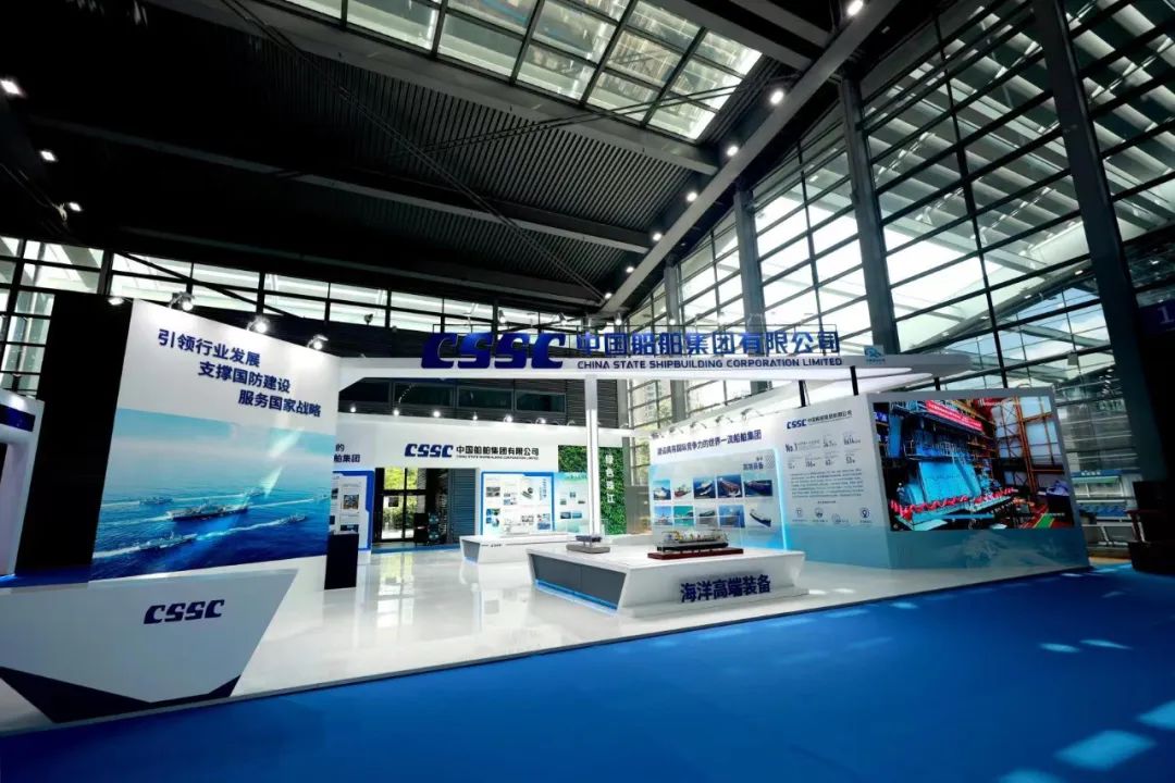 在大會(huì)的展示環(huán)節(jié),中國(guó)船舶集團(tuán)展臺(tái)通過集團(tuán)總體、海洋防務(wù)、海洋高端裝備、工藝技術(shù)創(chuàng)新發(fā)展、海洋經(jīng)濟(jì)新業(yè)態(tài)、工匠風(fēng)采、“奮斗者”號(hào)、綠色珠江八個(gè)板塊,分別展出了7500立方米液態(tài)二氧化碳運(yùn)輸船、半潛式全自動(dòng)現(xiàn)代化三文魚深海養(yǎng)殖裝備、合金鋼中間軸在大型油船上的首次應(yīng)用等55項(xiàng)創(chuàng)新成果,并展示了28位工匠代表的風(fēng)采。集團(tuán)公司展臺(tái)采用開放、通透的布局,突出中國(guó)船舶品牌元素,集中展示集團(tuán)公司立足新發(fā)展階段,貫徹新發(fā)展理念,在戰(zhàn)略重組后以高質(zhì)量發(fā)展為主題,壯大主業(yè)實(shí)業(yè)、加快推動(dòng)船海產(chǎn)業(yè)向中高端轉(zhuǎn)型發(fā)展,以及大力弘揚(yáng)軍工精神和勞模精神、勞動(dòng)精神、工匠精神,強(qiáng)化自主創(chuàng)新的整體實(shí)力和在推動(dòng)低碳環(huán)保、區(qū)域經(jīng)濟(jì)發(fā)展等方面的最新成果。集團(tuán)公司還通過本屆大會(huì)“互聯(lián)網(wǎng)+展會(huì)”模式開設(shè)的“云展會(huì)”,讓參觀者線上云游中國(guó)船舶展臺(tái),擴(kuò)大企業(yè)品牌影響力。