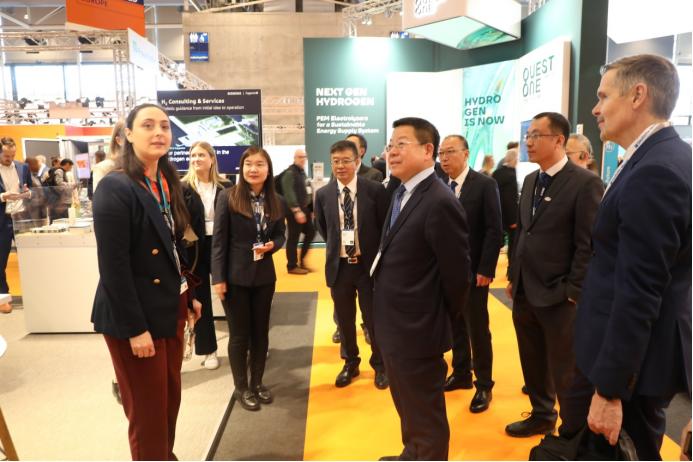 展會(huì)期間,中船集團(tuán)舉辦了電解水制氫設(shè)備、超高溫大型工業(yè)熱泵、智能裝備解決方案等30余場(chǎng)專(zhuān)題推介會(huì),發(fā)布了全球單體最大3000立方電解水制氫設(shè)備,與德國(guó)、瑞典兩家客戶(hù)簽約電解水制氫項(xiàng)目合作協(xié)議,與全球眾多客戶(hù)進(jìn)行了技術(shù)與產(chǎn)品交流,深入推進(jìn)國(guó)際市場(chǎng)營(yíng)銷(xiāo),進(jìn)一步提升了中船集團(tuán)新興產(chǎn)業(yè)的國(guó)際影響力。此外,中船集團(tuán)還組織相關(guān)成員單位赴德國(guó)、法國(guó)等地,與林德、德希尼布和施耐德等全球知名跨國(guó)企業(yè)進(jìn)行了推介交流與合作洽談,進(jìn)一步鞏固合作關(guān)系,為后續(xù)深化合作奠定基礎(chǔ)。同時(shí),組織與中國(guó)國(guó)機(jī)集團(tuán)、國(guó)家能源集團(tuán)等中國(guó)企業(yè),就展覽展會(huì)、品牌宣傳、國(guó)際項(xiàng)目合作等方面進(jìn)行交流,攜手拓展國(guó)際市場(chǎng)。