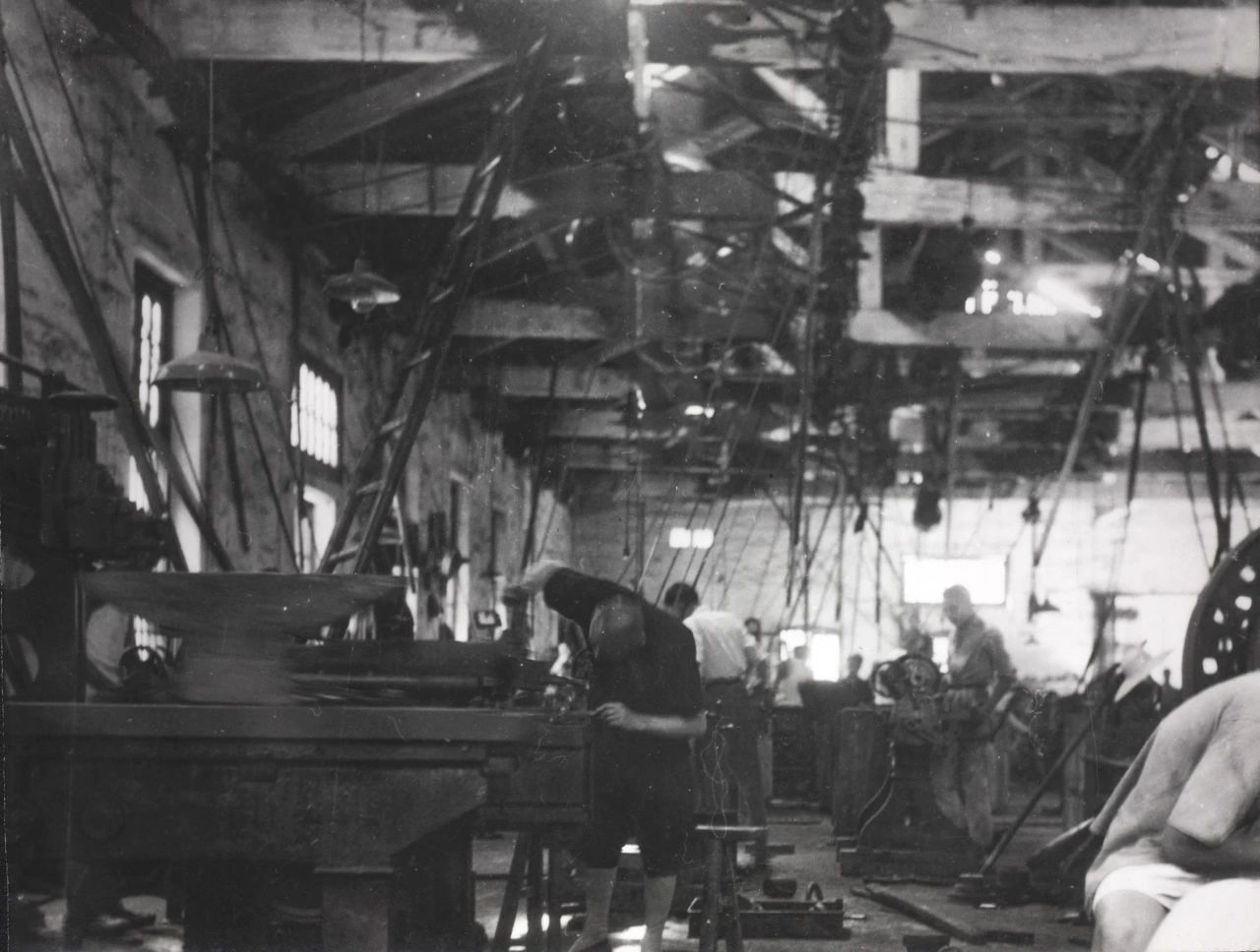 1934年武漢,解放前,沒有產(chǎn)線的概念,全部利用張之洞早年開辦的紡紗局廠房,撥用了其他廠的舊機(jī)床設(shè)備,進(jìn)行手工作坊式生產(chǎn)。