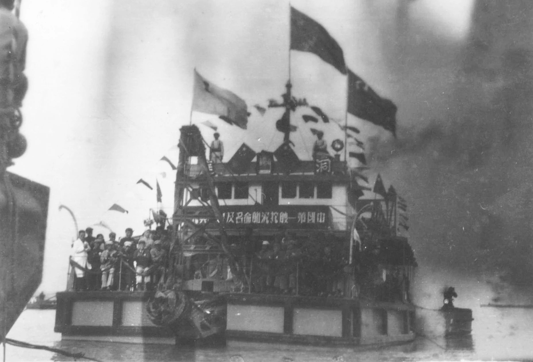 1949年7月上海,1949年7月23日,江南造船所舉行“職工慶功大會(huì)”。上海市市長兼軍管會(huì)主任陳毅、副市長曾山、華東海軍司令員張愛萍、上海市總工會(huì)主席劉長勝等出席了大會(huì)。會(huì)上總結(jié)修復(fù)廠房設(shè)備的經(jīng)驗(yàn),宣布恢復(fù)生產(chǎn)表彰有功人員。全所有 134人被評(píng)為一、二、三等功臣受到表彰。