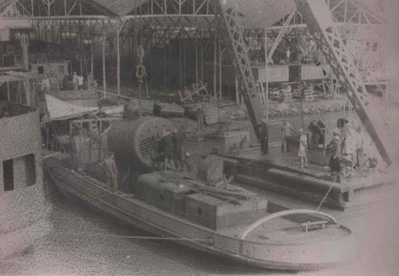 1958年廣州,1958年,廣船國際的前身廣州造船廠的造船塢,圖中的履帶式起重機(jī)是廣州造船廠主要的起重設(shè)備。