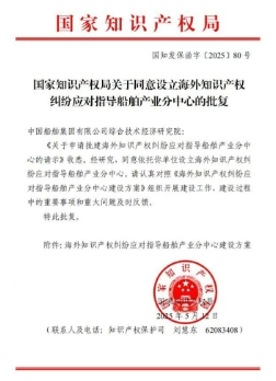 近日,由中船集團所屬中船綜合院(集團公司知識產(chǎn)權(quán)中心)申報的海外知識產(chǎn)權(quán)糾紛應(yīng)對指導(dǎo)船舶產(chǎn)業(yè)分中心,獲得國家知識產(chǎn)權(quán)局批準設(shè)立。截至目前,該中心是國家知識產(chǎn)權(quán)局在全國設(shè)立的第五家產(chǎn)業(yè)分中心,也是船海產(chǎn)業(yè)領(lǐng)域唯一一家分中心。該中心的設(shè)立,為船舶企業(yè)“走出去”提供全鏈條知識產(chǎn)權(quán)保障,助力船舶產(chǎn)業(yè)在海外市場中更好應(yīng)對知識產(chǎn)權(quán)挑戰(zhàn)。