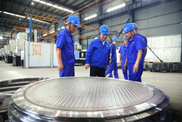王國強深入科研生產一線,調研了相關車間、實驗室、勞模創(chuàng)新工作室,察看了智能制造中心、重點產品、相關技術進展;慰問了勞模工匠、一線員工,與他們就現(xiàn)場管理看板優(yōu)化、工藝改善等交流互動,勉勵他們健康生活、快樂工作,叮囑相關單位負責人要做好防暑降溫工作;聽取了相關二級管理單位生產經營、深化改革、科技創(chuàng)新、人才培養(yǎng)、黨的建設等方面情況匯報。
