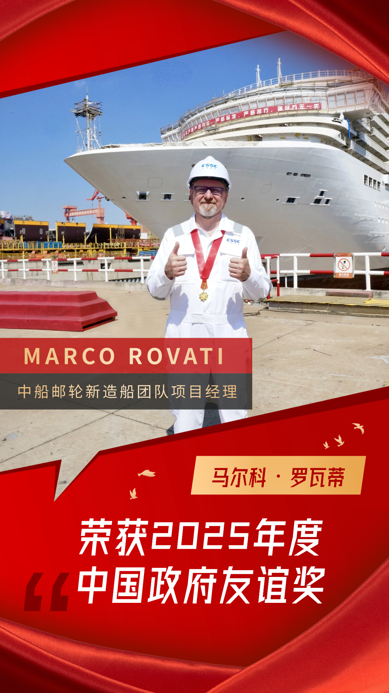 喜報!中船集團(tuán)郵輪資深專家MARCO ROVATI榮獲2025年度中國政府友誼獎