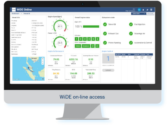與X-DF控制平臺相輔相成的是智能數(shù)字專家系統(tǒng)(WiDE),它如同主機的忠誠衛(wèi)士,全方位守護主機安全平穩(wěn)運行。該系統(tǒng)通過5G通信技術(shù),對主機運行數(shù)據(jù)進行實時抓取和傳輸。全主機監(jiān)測點位超過300個,可實現(xiàn)對主機關(guān)鍵部位和運行參數(shù)的24小時不間斷實時監(jiān)測。一旦主機運行出現(xiàn)異常跡象,哪怕只是極其細(xì)微的參數(shù)波動,WiDE系統(tǒng)都能迅速捕捉,向24小時專家團隊求助,自動調(diào)取問題數(shù)據(jù)。專家通過分析數(shù)據(jù),從而更準(zhǔn)確、快速地診斷主機故障,為及時維修提供了有力支持。