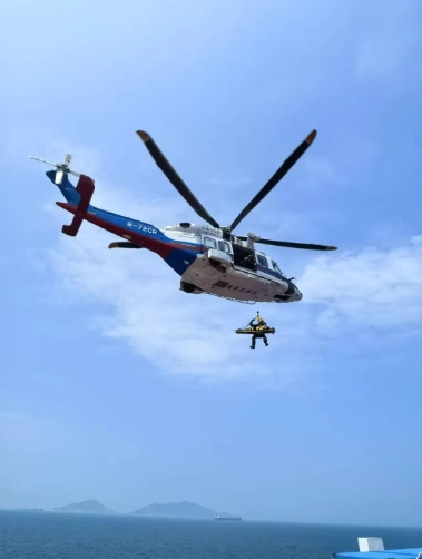 4月30日12時(shí)許,在中船集團(tuán)旗下廣船國(guó)際G1172船海試期間,一名參試員工突發(fā)急性消化道出血,出血量達(dá)400毫升,面色蒼白、血壓持續(xù)走低、心率持續(xù)攀升、意識(shí)逐漸模糊,并出現(xiàn)休克前兆,若無(wú)法在黃金救治期內(nèi)送醫(yī)救治,隨時(shí)可能危及生命。海上常規(guī)救援方案需要調(diào)用拖輪或快艇轉(zhuǎn)運(yùn)陸上醫(yī)院,耗時(shí)長(zhǎng)且海上顛簸可能進(jìn)一步加劇出血風(fēng)險(xiǎn)。時(shí)間刻不容緩,常規(guī)救援已經(jīng)來(lái)不及了。