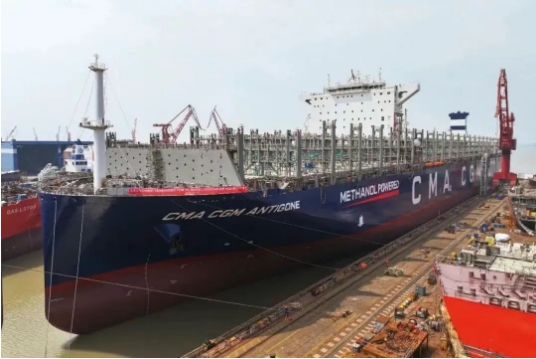 出塢的16000TEU甲醇雙燃料動力大型集裝箱船首制船是江南造船自主研發(fā)設(shè)計的“鯤系列”船舶,也是首艘實現(xiàn)了全船模擬堆箱綁扎試驗的超大型雙燃料集裝箱船。該船出塢前達到機艙發(fā)電機動車狀態(tài)和全船亮燈。