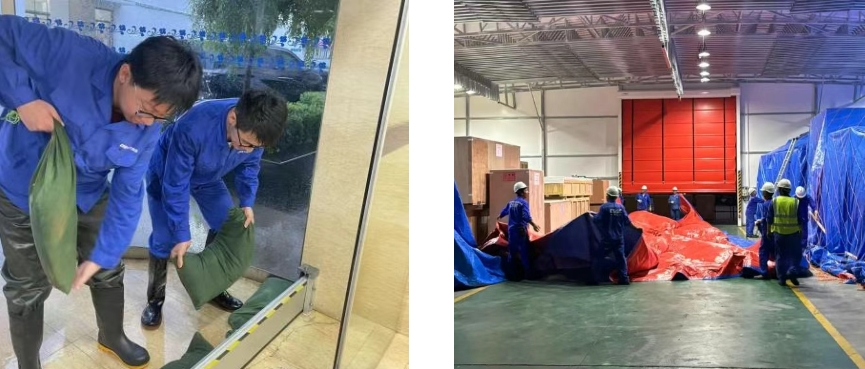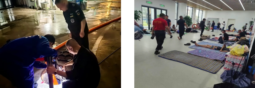 第一時間啟動防汛防臺緊急預(yù)案,向全體員工發(fā)出動員令。相關(guān)部門深入現(xiàn)場檢查設(shè)備設(shè)施,排除風(fēng)險隱患。針對低洼易積水區(qū)域開展“竹節(jié)草”臺風(fēng)前安全專項檢查,確保室外門能關(guān)盡關(guān),同步組織排查所有易松動和易掉落物料的清理;在樓宇門口設(shè)置防汛沙袋,做好防水工作;在動力作業(yè)區(qū),開展變電站防汛沙袋布置和水位檢查等,確?,F(xiàn)場安全。