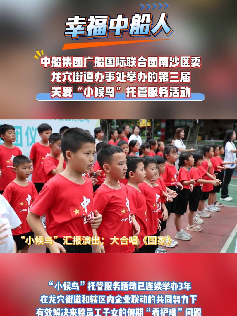 廣船國(guó)際“小候鳥”托管服務(wù)活動(dòng)已連續(xù)舉辦3年,切實(shí)有效解決了來(lái)穗員工子女的假期“看護(hù)難”問(wèn)題,提高員工扎根南沙、逐夢(mèng)南沙的歸屬感與幸福感,是廣船國(guó)際聚焦“幸福中船人”目標(biāo)的生動(dòng)實(shí)踐、“我為群眾辦實(shí)事”及“六船同心”黨建品牌“民生號(hào)”建設(shè)的重要內(nèi)容。