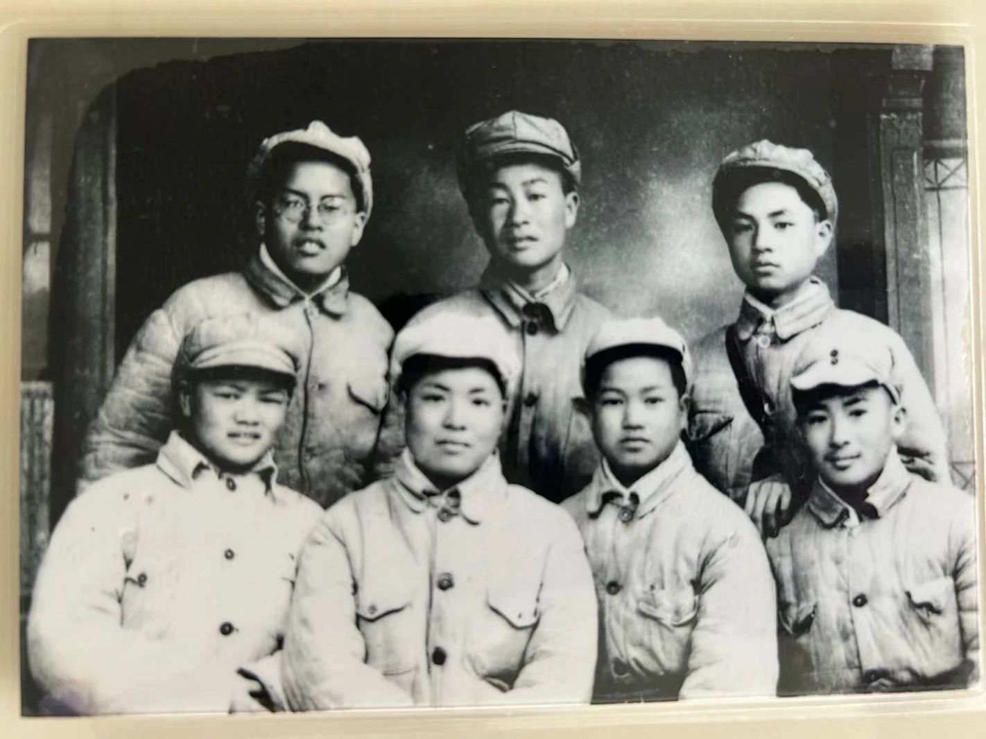采訪中,劉暉小心地從文件袋中取出一張張老照片,向記者講述背后的故事。其中一張是1949年3月,劉暉與戰(zhàn)友們?cè)诓筷?duì)休整間隙拍下的合影。她一直珍藏這張照片,畫(huà)面中,定格了他們青春年少、英姿颯爽、滿懷革命理想的模樣。