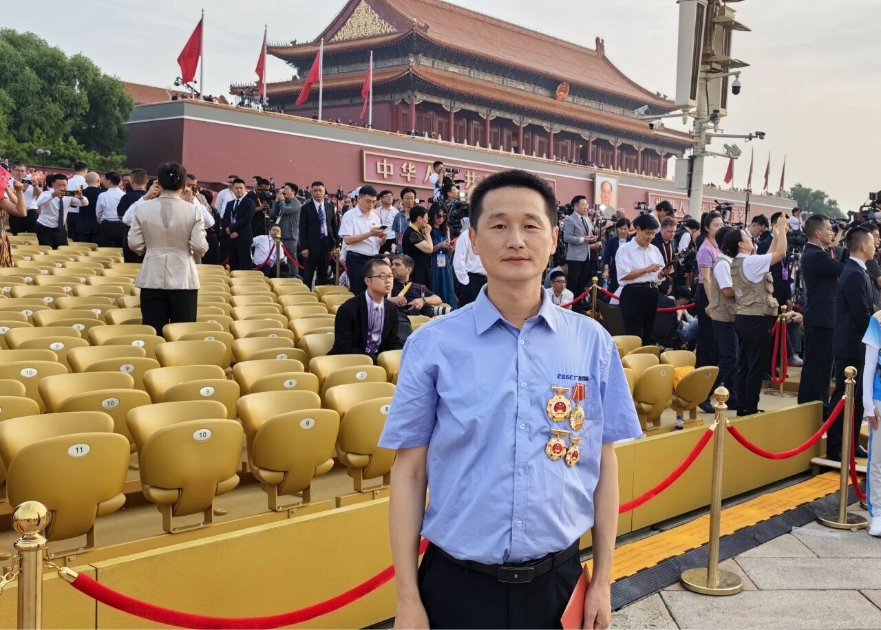 當(dāng)雄壯的《義勇軍進行曲》奏響,五星紅旗冉冉升起,我情不自禁地起身肅立,與現(xiàn)場所有群眾代表一同高唱國歌。這一刻,跨越時空的民族記憶被瞬間激活,80年前先輩們?yōu)槊褡宕嫱鲈⊙獖^戰(zhàn)的壯闊畫卷仿佛在眼前重現(xiàn)。在閱兵分列式中看到了我們中船集團研制的8型整裝裝備震撼出場,接受黨和人民的檢閱,倍感榮光,背后是我們中船人的不懈努力和創(chuàng)新精神。